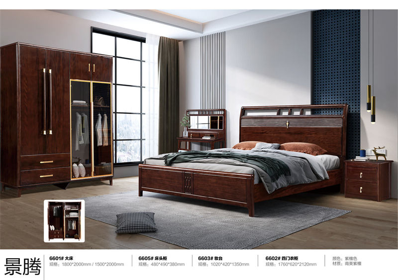 南美紫檀木家具,南康新中式风格家具,江西紫檀色实木家具,古典新中式家具,南美紫檀木套房招商,禾裕南美紫檀系列,景腾家具生产厂家