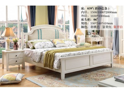 木佰创美式家具:象牙白美式压纹床039#(磨砂蓝条)